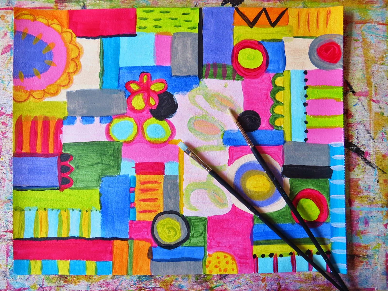 and a whole bunch of colorful postcards (made with acrylic paint backgrounds):